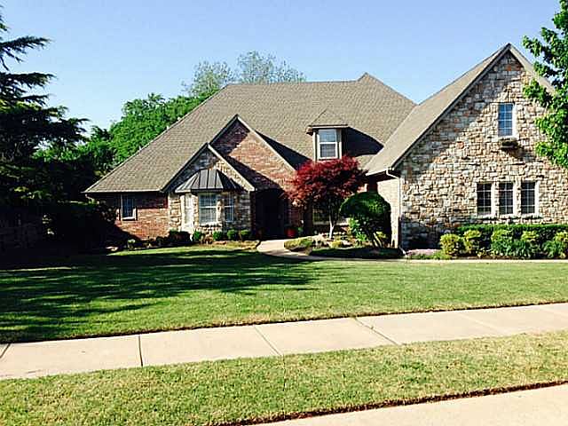 Golf Course Community - Heritage Greens at Coffee Creek located off Covell between Kelly and Broadway in Edmond School District. Immaculate home in neighborhood with pools, parks, fishing ponds, and walking trails! HOA club house can be reserved for parties! This executive home has mature trees that landscape the back with views of ponds and greenbelt! Tasteful curb appeal welcomes you into this lovely home with approx. 4013 sq.ft. with 4 bedrooms (3 down & 1 up) plus 4 living (formal living, family room, study, and upstairs game room), formal dining, 4 full baths, built 2001 and 3 car side load garage. Tiled entry opens to formal dining and formal living with wood floors leading down hallway to study and master suite area. French doors open to huge study with sitting area, ceiling fan, richly stained wainscoting, and built-in desk and bookcases. Master bedroom has wood flooring, ceiling fan, access to 3rd covered patio, and private bathroom suite: tile flooring, ceiling fan, separate vanities, granite counter tops, oversized whirlpool tub, shower, built-in mirrored cabinets, and spacious walk-in closet with built-ins. Bed #2 off master area has wood flooring, ceiling fan, plantation shutters, ample closet storage, and access to full bathroom. Bedroom #3 on lower level opposite side of home with ceiling fan, walk-in closet, and access to full bathroom. Upstairs level has Bedroom #4 with full bathroom, walk-in closet, and access to tons of floored attic space. Upstairs living room for entertaining family and friends has ceiling fan and wood flooring - great atmosphere! Family room with ceiling fan, stone fireplace with gas logs, built-in entertainment cabinet, and open to kitchen. Kitchen supplied with tile flooring, stainless steel appliances, dishwasher, microwave, double ovens, gas cook top accented with brick hearth, tile back splash, granite counter tops, breakfast area, breakfast bar, built-in wine rack, center island, appliance garage, above & under counter lighting, and access to Butlers pantry with walk-in pantry. Access from kitchen leads to covered and open back patio accented with tile and overlooks serene views - very peaceful! Utility room has tile flooring, built-in ironing board, wash sink, room for fridge or freezer, ample cabinet space, and access to side patio. Mud room leads to an outstanding garage - with storm shelter, ceiling fan, garage door openers, and exterior keypad access. Other features include: sprinkler system, security system, painted and stained woodwork, wood blinds, plantation shutters, recessed lighting, crown molding, brick and stone exterior, new roof in 2014, built-in linen cabinets, kitchen pot rack, window coverings, exterior speakers, and wired for surround sound. Taxes are approx. $5543 per year and HOA $695 per year. For more information contact listing broker Crossland Real Estate, Aimee Crossland at 405-604-6800