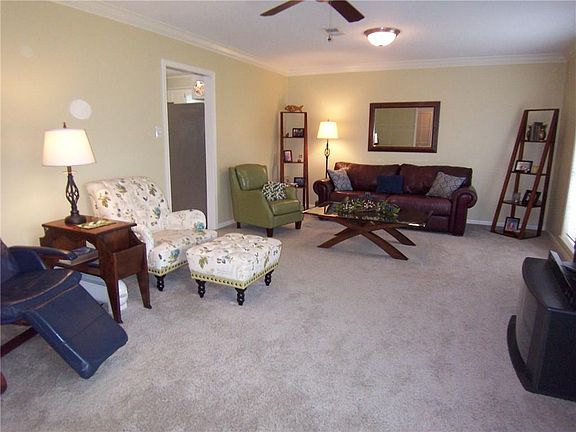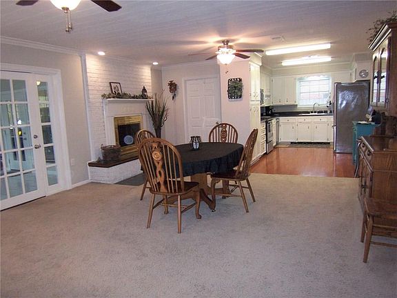 This 3 BD/2BA home is located near a golf course. It has two large living areas. The kitchen has stainless steel appliances, new counter tops & pantry storage. There is a cozy fireplace for chilly days and a large tiled sunroom for enjoying nature. The utility room has space for extra shelves, along with washer/dryer hook ups. All the bedrooms have large windows that provide natural light. The patio is great for entertaining and there is a lofted shed with a built in work bench for hobbies and extra storage. The back yard is private and backs up to wooded acreage. It is MOVE IN READY! Be sure to check out the visual tour!