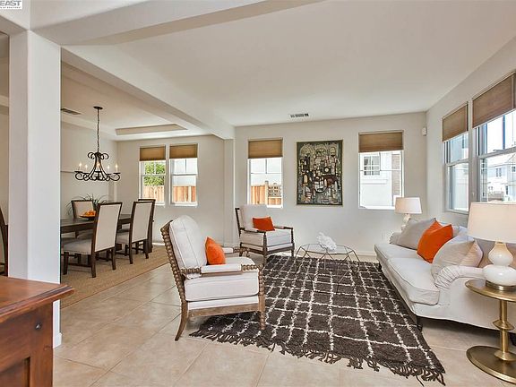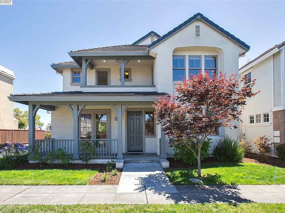 This Plan 4 home was built in 2005 & features 3 spacious bedrooms, 2 full baths, a downstairs powder room, & an attached 2-car garage. It's located in Bayport, a community known for its easy access to all that Alameda offers. The entrance of the home opens into a ceramic tile foyer, newly painted decorative walls, dual pane windows, & energy efficient lighting. The ground floor boast sunny adjoined living & dining rooms. The kitchen is large enough to host an entire party & opens into an inviting family room featuring a built-in entertainment niche and never-been-used gas fireplace. The 3 spacious bedrooms are located upstairs along with 2 full baths, a loft, & laundry room with built-in cabinets & utility sink. The master bedroom suite has an en-suite bath & walk-in closet with plentiful storage space. The bathroom is a relaxing getaway enhanced by smooth tile floors & a spa-like soaking tub. Lastly, the garage offers rear access, leaving the front facade clean & pedestrian friendly. We recently upgraded the front yards with beautiful custom-designed landscaping, closed the loft with French Doors turning it into a den and gave the entire exterior of the house a fresh paint.