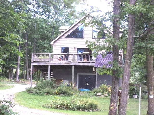 Beautiful setting just minutes from all-sports Hubbard Lake! This one bedroom chalet just needs a little TLC. Walk-out basement could be 2nd bedroom and family room, and is plumbed for a 2nd bath. Freshly painted on main and upper levels. Situated on 2.3 acres with beautiful hardwoods, with loads of potential!