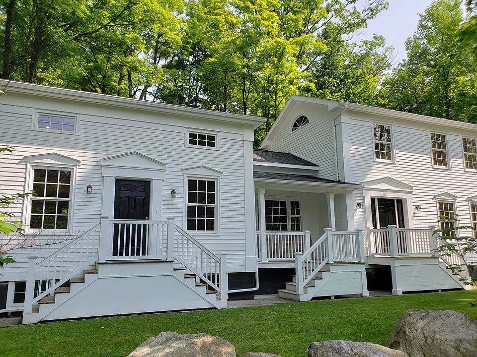 Greek Revival style is born again. Within the existing footprint and with respect for the historic character of the neighboring homes, this 1850's style home compliments the history of Garrison. The home is redesigned with an open floor plan. The 2007-20 new construction includes a finished recreational space that could be used as a 3rd bedroom, ultra high efficiency oversized windows, wide plank pine floors, vaulted ceiling in the great room, central AC, and high ceilings throughout. The home features a bedroom on the first floor with a full bath and dining room with a four panel French door access to the deck for extended outdoor entertaining. The Master bedroom features a double glass sink/vanity, large tiled shower and a walk-in closet, and balcony. Light and bright in every room. The home is all ready to make it your own. 3 miles to the Garrison train, the historic village of Cold Spring, and the Hudson River.