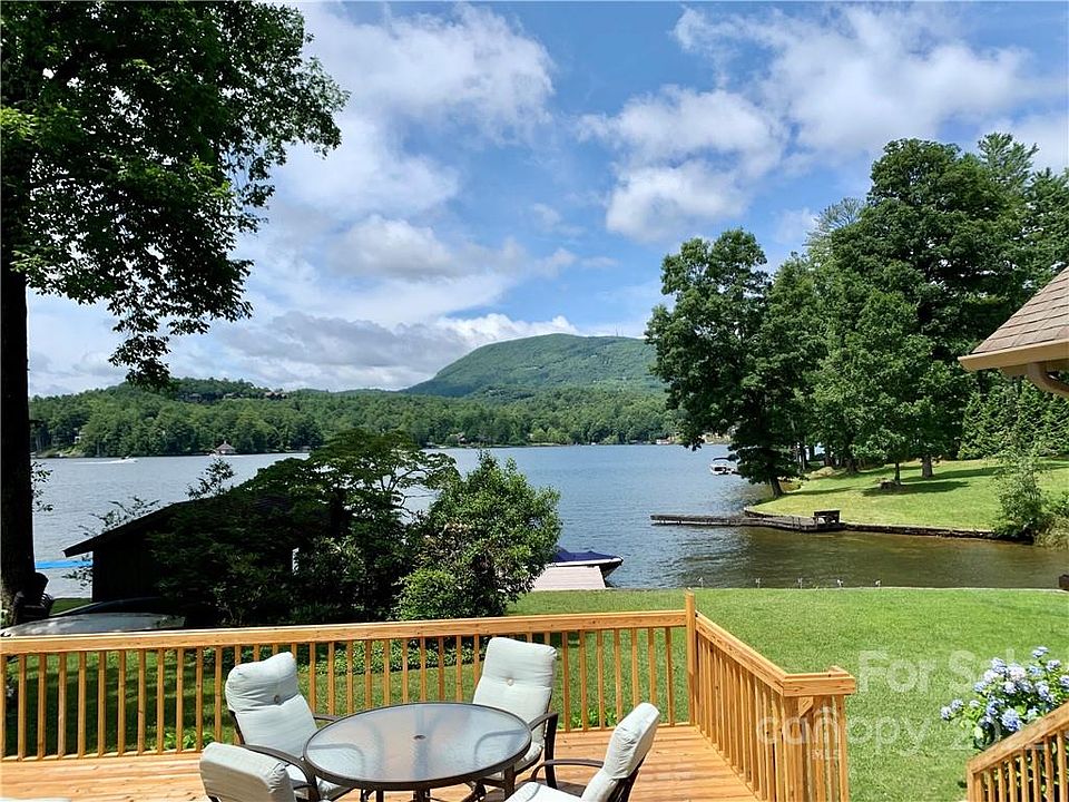 Situated on the original site of the historic Toxaway Inn, this magnificent 5 BR, 4 BA one level home enjoys two flat lakefront sites with sweeping views of Lake Toxaway and Toxaway Mountain and 210 feet of lake frontage. This rare, park-like setting has a large flat back and side yard overlooking the lake, private dock, boathouse, and stone steps into the lake for easy access for swimming, boating, and paddle boarding. This home is well-maintained and features a beautiful paneled great room with massive stone fireplace overlooking the lake. The kitchen opens to a charming keeping room. Extensive outdoor entertaining space overlooking one of the finest views of Lake Toxaway.