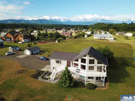 Pacific NW Home w/Olympic Mtn View on 1.45 acre. 2859sf custom home offers great rm, master suites, guest rm w/On-suite bath, kitchen w/granite slab counters & ss appliances, lower family rm, laundry, guest suite w/living rm, kitchenette & prvt separate entry. Additional detached 629sf Art Studio w/full kitchen, full bath & laundry totaling SqFtg to 3488. Excellent location close to public beach access at Wilcox Rd. Attached 2 car garage, detached 1 car garage + outbuilding, Full RV Hookup w/50amp service!
