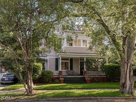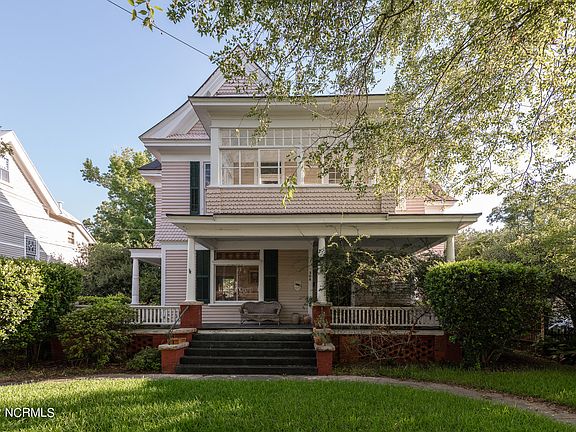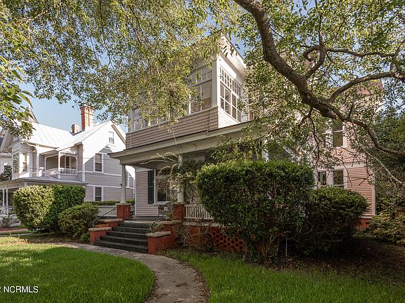 Welcome to the Charles L. Ives Home, Ca 1880-1895, a one of a kind Historic landmark home that sits on the a picturesque block forming one of New Bern's most intact Victorian streetscapes. The home boasts a welcoming large covered porch and the exterior is highlighted by a broad band of patterned shingles which runs around the house between the first and second levels. This is characteristic of the Queen Anne style. At the front of the home sits a cozy second floor sun room or sleeping porch with sliding windows from the early twentieth century. This adds to the romantic appeal of the home. You will be impressed by the foyer; with original trims, beautiful windows with leaded glass details and impressive wood floors. From the foyer hall you will find the main living room, a family room and a large formal dining room, all perfect for entertaining. The kitchen and full bath at the back of the first floor are sun filled rooms morning til night.. The second floor has an impressive built in linen closet that is one of my favorite details with large bedrooms that angle off of the long hallway. There are interesting alcoves and details you will love discovering throughout this home. Fireplace surrounds are in 2 bedrooms and one bedroom has an original walk in dressing room with floor to ceiling closets. The hall bath has the original claw tub adding to the romantic appeal of the home. The laundry room was very possibly a porch that was enclosed at one time for that purpose. The walk up attic has 635 sq. ft. and has the beautiful wide plank floors with more area to expand to. The homeowner has replaced wiring, plumbing and ensured every window opens. Custom built screens grace those windows. The back yard is the perfect size for private quiet time. With it's off street parking and garage/workshop its a jewel of a home waiting for your finishing touches.
