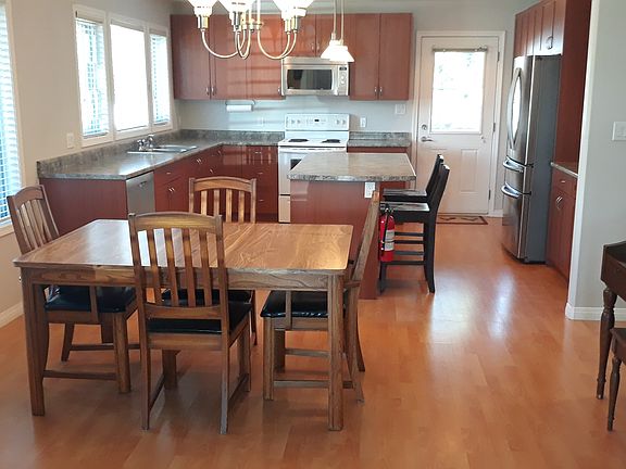 Furnished 3 bed + recroom/4th bed, 2 bath - master has ensuite & walk in. Wheelchair accessible home, 2 car garage & 2 parking spots in huge driveway. Laundry, Covered patio with BBQ & patio furniture. Fenced yard, fruit trees, central Furnace, AC & Vacume. Walk to tennis court and water. $3600 & part utilities . Royal Bay off Metchoisn Rd Tennant pays part of all utilities, separate sec dep for pet.