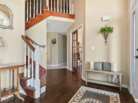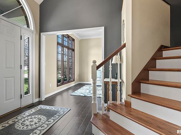 Family friendly home has 2-story foyer entry with adjacent office to the right of foyer. Formal living room and dining room, family room. Kitchen features tile backsplash, island and breakfast nook. Dual patios (one covered) easily accessible from Kitchen. Good sized backyard. Upper level has primary bedroom suite, where master bath has double vanity and glass walk-in shower, plus 3 additional bedrooms sharing a full bath. Mostly finished basement offers recreational room plus 5th bedroom, full bath. Dual zones HVAC replaced within last 5 years; sump pump replaced 2020.