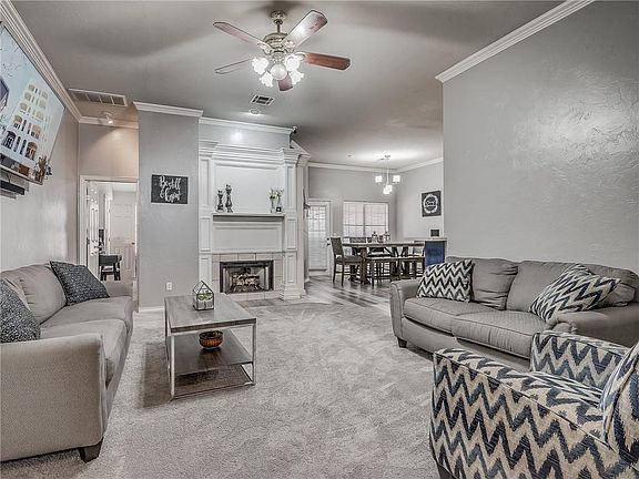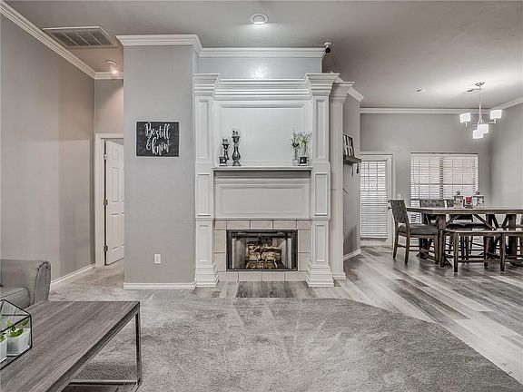 LOOKING FOR A FANTASTIC PLACE TO CALL HOME? This is the one. 2 Car. 3Bedroom. 2 Bath. This home is absolutely adorable. Open floor plan. Crown molding in living room, kitchen and extra bedroom. Living room has ceiling fan, gorgeous gas fireplace with mantle, and a wet bar. Dining room has built-in shelving and beautiful updated lighting. Kitchen is super cute. Beautifully painted cabinets with updated hardware. Laundry room has cabinets above washer and dryer. Primary bedroom is quite spacious with ceiling fan and vaulted ceiling. Primary bath has double sinks and soaker tub. (tub was jetted tub and can be reverted back from soaker to jetted) Primary closet has built-in dressers. Lots of shelving. Extra bedrooms are also quite spacious. Flooring in home is only 3 years olds (carpet and wood look laminate) Looks amazing. Blinds throughout home. Such a cute cute home
