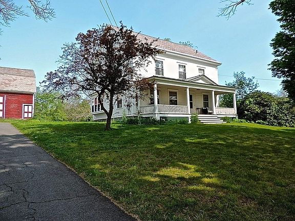 Only the second time on the market in over sixty years! This gracious 8 room, 3 bedroom Farmhouse is beautifully sited on13 acres of mostly open rolling farm land. Original details include a slate roof, cherry woodwork, hardwood floors, built-in cupboards & a classic front porch to enjoy w friends and neighbors.The 1st floor features a country kitchen w custom-built cabinetry, Brazilian slate countertops, a soapstone sink, walk-in pantry & full bath.There is a spacious living room, south-facing dining room w original built-in cupboards & a window seat plus an additional room is being used as a library. A full bath, enclosed entry porch & mudroom complete the 1st floor.The 2nd floor has 3 large sunny bedrooms & full bath. The 3rd floor has been transformed into a single bright studio space spanning the length of the house. Beech flooring,skylights,built-in bookcases and wired for cable & phone make this home truly a rare find. In-town living in a beautiful rural setting. Exceptional.