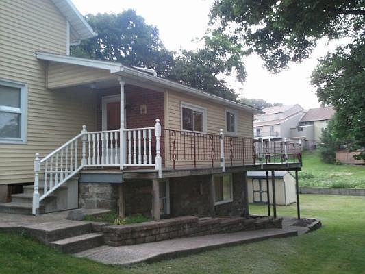 Available March 1st. Dog friendly twin house with large raised bed garden and massive, 850 sqft walkout basement at the end of a safe and quiet dead end street. Large, eat-in kitchen has gas stove/oven and a back door that lead to a huge composite deck with built-in benches that looks out over the back yard. One nice sized bedroom and full bathroom on the first floor, next to laundry area complete with washer and dryer. Second floor has one smaller bedroom with one big closet and one bigger bedroom withe one small closet AND one big closet AND HALF BATH. This is one truly lovely home. Absolutely a must see. Tenant responsible for all utilities.