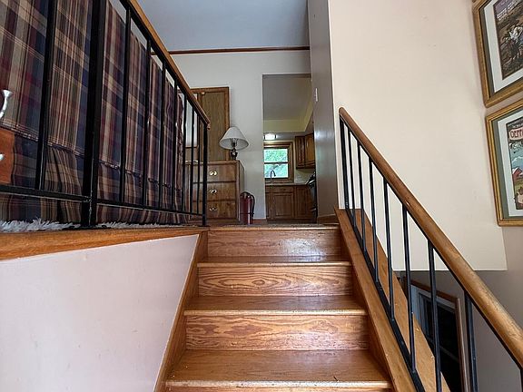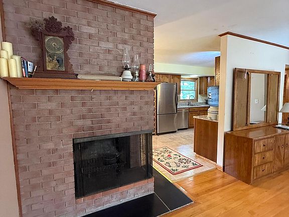 Step inside to find 4 Bedrooms, 2 Full Bathrooms, and a spacious kitchen with granite countertops, ample cabinetry, stainless appliances that includes a five burner gas stove, and a unique fireplace shared between the kitchen and living area. Original hardwood floors add warmth and character throughout each of the 4 Bedrooms and Living Area. The lower level offers a finished flex space—ideal for a den or home office—plus an adjacent laundry/utility room with space for storage, crafts, or projects. The oversized two-car garage provides room for a workshop or additional gear.