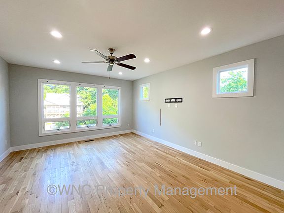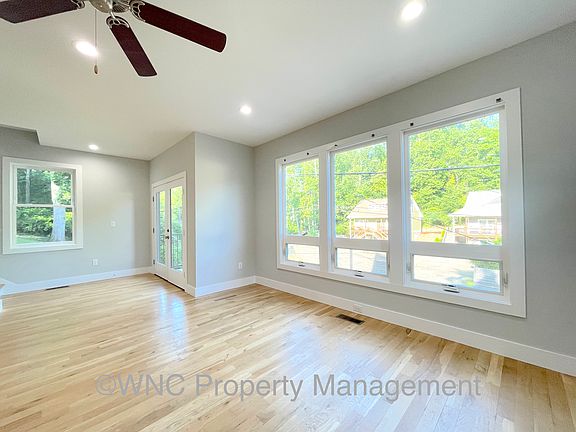 Modern Home with Garage and Fenced Yard! FEATURES: 3 beds, 2.5 baths, approx 1,805 sf. Stylish kitchen with modern cabinets, granite counters, wood block island, stainless steel appliances, pantry closet, and tile backsplash. Open floor plan dining and living areas with lots of natural light. Primary bedroom features an ensuite bath with double granite vanity, modern tile shower, and walk in closet. Second full bath features granite vanity and subway tile surround. Hardwood floors throughout. Laundry room with washer and dryer included. One car garage. Covered back deck with pine ceiling and fans. Fully fenced backyard. Dual zone central heat and central AC (electric heat pump). LOCATION: Conveniently located near shopping, restaurants, Biltmore Village, Biltmore Estate, Blue Ridge Parkway, Biltmore Park, Downtown Asheville, etc. LEASE TERMS: Available now. One year lease with option to renew. Income must be at least 3 times rent OR 36 times rent in savings. 1.5 month security due at lease signing. First month due at move-in. Cosigners not permitted. Dogs will be considered for a one-time fee of $250 per dog; 2 dogs max; no cats; some homeowners may have specific pet requirements such as breed and weight limit. $55 per adult applicant for credit / background check. TO APPLY: Submit an application thru the WNC Property Management website. Applications will be processed on a first-come, first-served basis, and there is no charge for the application if we do not process it. Offered by WNC Property Management.