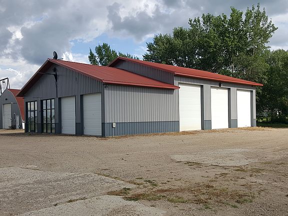 The property consists of two lots: both zoned commercial and within city limits. One vacant lot 235'x320' - 1.84 Acres, One developed lot 235'x430' - 2.34 Acres with four buildings: Four Buildings: 1.) Shop 46x72 - 3,312 sq ft In-floor heat w/natural gas boiler. 16' ceilings in the larger section, 12' ceilings in smaller section, four 12'x14' doors (two are in line for a drive-thru), two 10'x9' doors on one end of the smaller section, two 9'x10' glass fronts w/one walk-in door, three other walk-in doors. Full bathroom: Sink, toilet, and shower. Utility sink in smaller section. Hose hook-ups throughout the larger section. Air Lines installed. Potentially rented at $2500 per month. 2.) Quonset 46x56 - 2,576 sq. ft. Natural Gas Radiant Heat. Currently rented for $1,000 per month to the same company for 20+ years. Renter is in a 24 month prepaid lease agreement. This would need to be a contingency in any purchase agreement. 3.) Block Building 18x36 - 648 sq. ft. Electric Radiant Heat. $100 per month rent. 4.) Pole Building 36x63 - 2,268 sq. ft. Sectioned off into five units, no heat, gravel floors, lights and outlets in each unit. Each unit is currently rented at $60 per month. There is 3 Phase electrical on property.