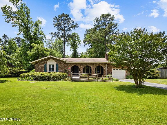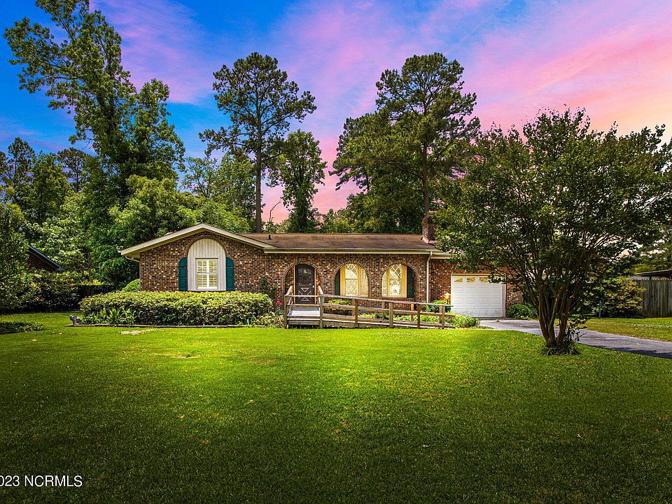 Adorable architecture on this 3BR/2B brick ranch home with one car garage that offers all-one-floor living in Sherwood Forest Neighborhood with large backyard and storage shed! No City taxes and no flood insurance! Primary suite plus 2 bedrooms and hall bath make this home a great home for someone downsizing or for a young family!