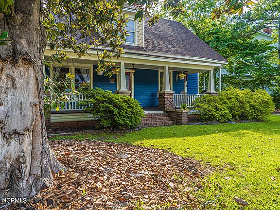 Own a beautiful piece of Moore County history. This home was built around 1900 and has been perfectly updated while preserving the feel of that time. The kitchen is bright and with the white cabinets and large windows providing lots of natural light. The covered side porch off the kitchen is an ideal spot for your morning coffee. The formal dining room feel like you're back in the 1900s. The owners suite is on the first floor with a wonderfully remodeled and expansive bathroom with a tile shower and huge soaking tub. The bathrooms vanity was built using the original wood floor and the built-in dresser in the new walk-in closet features old newspapers found under the floorboards during renovations. There is another full bathroom with a clawfoot tub and 2 additional bedrooms upstairs. The shed in the backyard has water and electricity run to it. Walk under the 100+ year old pecan trees to explore the entire back 2 acres. All this history in the heart of Carthage.