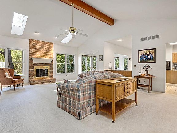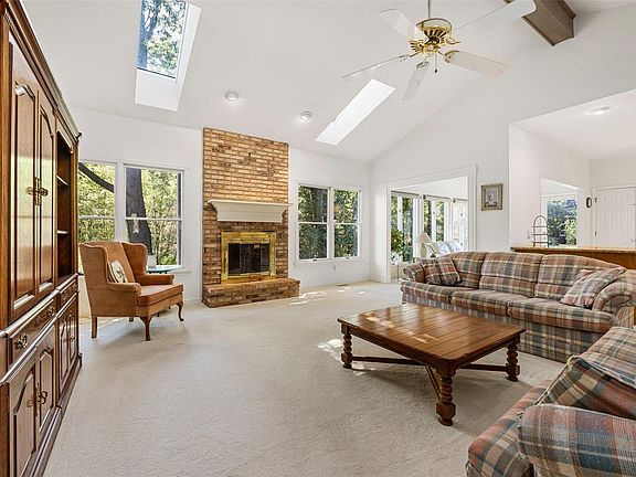 Trees, nature and a quiet setting. 3 sides of brick, newer roof & skylights(apx 2 years old). Great floor plan with over 2600 sq foot of living space on the main level, plus a finished walk out lower level. Vaulted 24 x 19 great rm with brick wood burning fireplace open to the sunroom connected to the kitchen and breakfast rm. The kitchen offers granite counter tops, built in oven & microwave, organizational work space, dual pantries, electric cook top/stove, kitchen aid appliances, tile. MFL/mud rm with sink & coat closet leads to the oversized garage. Dining rm w/coffered ceiling & fluted trim. Living rm ~ perfect home office. Owners suite featuring crown molding, bay window, walk in closet, ensuite with dual sinks, sep. whirlpool tub & shower. Bedrms 2 & 3 offer wonderful closet space, great window placement for furniture. The LL offer 2 more bedrms (5 in total) plus large family rm w/Fireplc, built-in shelves, full bath,lg storage, Dual HVAC, cedar closet, central vac. Lot .57 acre Additional Rooms: Sun Room