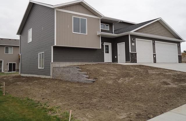Just finished with WALKOUT basement with low specials and over 1600sqf on main floor! Side yard for RV/BOAT pad! Southern exposure driveway. Cul-de-sac. Very private NEW subdivision with minimal traffic, ADJACENT to an elementary school. 3 bedrooms, 2 bath on main floor, along with MAIN FLOOR LAUNDRY. Living/dining/kitchen area is HUGE, all open with HIGH CEILINGS. QUARTZ counter tops, high efficiency furnace, FULLY FINISHED GARAGE, white trim, wood railing, stone accent on front facade, BIG KITCHEN ISLAND, basement insulation done, STAINLESS STEEL APPLIANCES are just some of the UPGRADES this home has. Please come in for private showing. House qualifies for 2 year tax except program by City of Mandan. MB Homes - since 1973, family owned and operated! Not one unsatisfied costumer yet! INVESTMENT GRADE HOME!