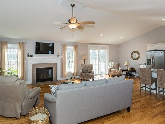 - Kit Dscrp: Flooring - Hardwood, Countertops - Stone/Granite/Solid, Recessed Lighting, Ceiling - Cathedral, Cabinets - Upgraded