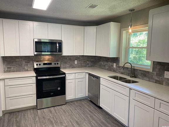 Remodeled! Spacious 3 bedroom 2 1/2 bath located in a lovely area of Jonesboro near higher end, mid century homes. Front door opens to the vaulted living room with stone fireplace. Spacious bedrooms and two bathrooms are grouped on the right side of home while common areas cover the remaining sq ft. The kitchen is large and sits next to a 2nd living area that would be perfect as a keeping room/dining area. A service hall off the garage incorporates the half bath and laundry area. New roof in 2021. In 2022: new windows, new kitchen & appliances, 1 brand new hvac (other is 2014 model and just serviced), new paint, new flooring, bathrooms remodeled. Slab.