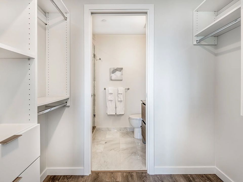 • Exterior features: Bicycle storage, Cardio room, Concierge, Electric Vehicle Charging Station, Heating system: Forced Air, Walk In Closet