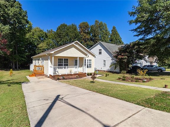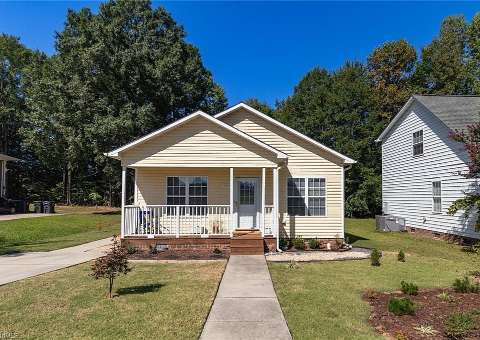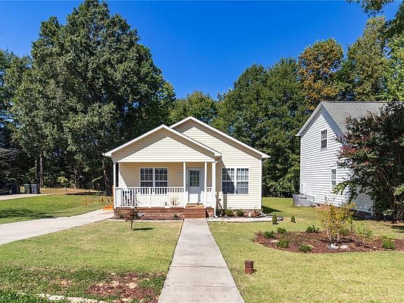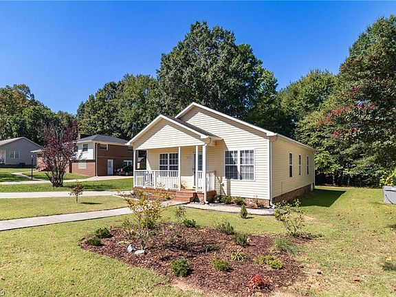 Renovated and neat as a pin, this charming Ranch home in Greensboro is truly move-in ready! A welcoming covered front porch sets the tone, leading into a spacious living room highlighted by vaulted ceilings and a ceiling fan. The adjacent kitchen features brand-new cabinets, quartz countertops, a farmhouse sink, and stainless steel appliances. The primary suite offers a tray ceiling, step-in closet, and a beautifully updated ensuite bath with new flooring and vanity. Two additional bedrooms with unique rustic concrete flooring share a stylishly renovated full bath. Fresh LVP flooring, new paint, and updated light fixtures are found throughout. With a brand-new heat pump and convenient access to 840 and 70, this home blends comfort, style, and location all in one!