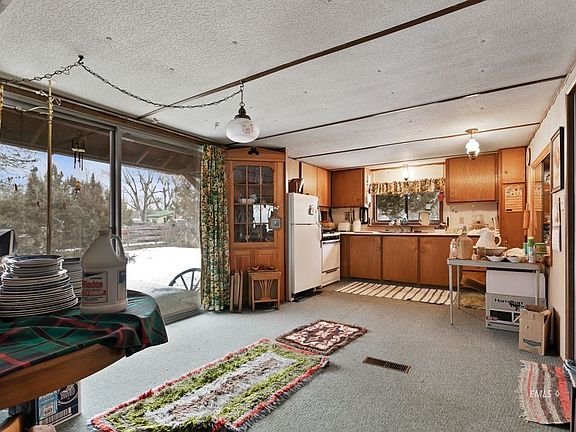 This is a single level 2 bedroom 2 bathroom home with a large beautiful yard that has raspberries, rhubarb, strawberries, an apple tree, lilacs, rosebushes and more. This home has a metal roof and central air. There is a wonderful porch area. There is also a workshop attached to the two car garage.