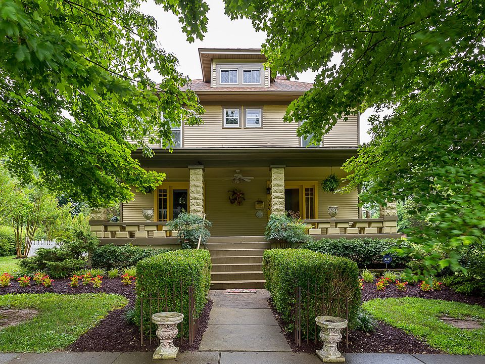 Exceptional historic Four (4) Square Craftsman Style home available in LaGrange on N 4th Ave! Spacious home with many updated and upgrades offers 3 or 4 bedrooms plus a full 3rd floor finished that could potentially add another 1 or 2 bedrooms. There are also 2 fully updated baths. A gracious front porch welcomes you, dual front doors allow you to enter the spacious living or dining rooms, both of which offer updated hardwood flooring, and an updated look for the living room fireplace (does have gas per the owner.) Large windows offer views of the lovely yard. A travertine tiled hall leads back the office (or 4th bedroom) the 1st floor full bath and the kitchen. The office has a fireplace as well as its own entrance to the 1st floor bath. This custom kitchen offers so much! Cabinets nearly to the ceiling (10') cream cabinetry, granite counters, huge farmhouse sink, stainless appliances including armoire refrigerator, 5 burner gas stove & trash compactor. There is a granite center island/table & a crystal chandelier. A number of the cabinets have pull out drawers & there is wide plank hardwood flooring. Across the full back of the house is a large Florida/family room with ceramic tile flooring and built-in cabinetry. There is also a granite counter with farm sink 'dog wash' station that makes a great wet bar if the dog station isn't needed. The open spindle staircase to the 2nd floor is a lovely feature of the dining room. Upstairs, the spacious master bedroom offers an unexpected, organized walk-in closet. The 2nd bedroom has a whole wall closet, both rooms are carpeted. A room that was a former kitchen (!) has composite flooring and can be a bedroom with its built-in cabinetry. Beyond this room is a large former sleeping porch with the laundry. Both rooms could offer a number of additional uses; tv, study, bonus, studio, etc. room for the 2nd floor. And there is a fully updated tile bath with large walk-in shower. The staircase to the 3rd floor completely open loft is from this laminate floor room. Awesome living or play space! All the grandkids sleeping over? Could be that room. Could divide Into a couple bedrooms. Would be an awesome artist studio. Much of it has high ceilings and has abundant light. There is an actual poured concrete basement. Though not one to probably ever finish, gives great storage space. There are two laundry hook ups here, but do not know it they are complete anymore. Out back there is a large deck with an attractive, large automatic awning (with its own wind sensor closing it on those 'too windy' days. I would guess the middle third of this nearly half acre level lot is attractively picket fenced. The lot goes all the way back to the alley. There is a fairly new 2.5 car smf one stall has a floor installed upstairs with a staircase. Great area for studio, shop, storage! The landscaping is lovely. I cannot possibly tell all here, you must set your appointment and come and see for yourself.