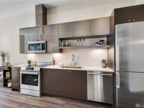 Welcome home to the Hendon Condominiums, brand new construction sitting on top of Phinney Ridge overlooking Greenlake. This studio has soaring ceilings, a private fenced patio, heated bathroom floors, and elegant finishes. Walk to Greenlake, coffee shops, restaurants, or simply enjoy the peaceful location this home offers. Unique loft space offers additional storage or sleeping area. Home includes a storage locker within the building as well as a full appliance suite. Photos of similar model.