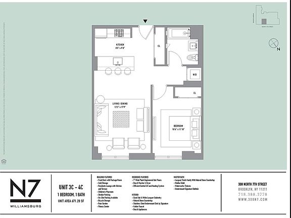 Located in the heart of Williamsburg, 308 North 7th Street Unit #4C is a renovated, one-bedroom, one-bath home with luxurious appliances and finishes designed by renowned designer Paris Forino. Featuring floor-to-ceiling windows, this apartment boasts an open chef's kitchen outfitted with Bosch appliances, dyed oak & white lacquer cabinetry, Italian custom arabecato corichia natural stone countertops and backsplash, a fully integrated refrigerator and freezer with ice maker, and Kohler faucet. Additional features include a Bosch washer dryer, multi-zone heating and cooling, and a chic modern bathroom outfitted with undermount signature bathtub, waterworks fixtures, Malibu toilet, and lacquer finish vanity with natural stone countertops. Located in a full-service, luxury condominium building, amenities include a fitness center; a children's playroom; a rooftop penthouse resident lounge with panoramic city views; bike storage; and a super/concierge. 308 North 7th Street Unit #4C is located on the north side of Williamsburg, just a short distance from public transportation and surrounded by countless opportunities for shopping, dining, and entertainment; offering the unique opportunity to live in a turnkey custom home.