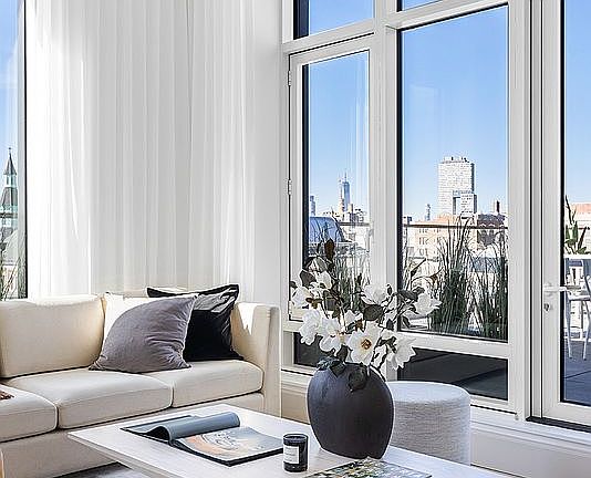 Quietly perched above the surrounding rooftops, this 7th-floor condominium unit is tucked away in its very own corner of 308N7- a serene, full-service boutique building in the heart of lively Williamsburg.