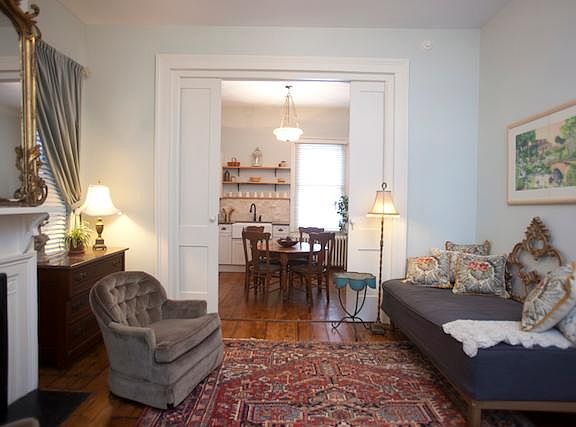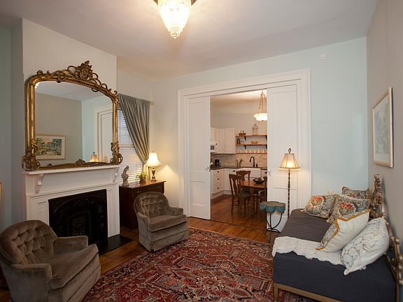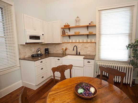 Almost everything you need is provided for you in the spacious & beautiful Cayuga Suite-just bring your clothes and computer! This is perfect for set-up for your Sabbatical stay in Ithaca . This house was completely renovated 6 years ago & was the Dewitt Park Inn for 3 years before becoming a long-term rental. It is conveniently located right across from Dewitt Park in the heart of downtown Ithaca. The rent of $1545/month includes all utilities including heat, electric, trash removal, WiFi, and parking. This Historic 1820's home is set comfortably back from Cayuga Street and offers a living room, kitchenette,11-ft ceilings, original fireplace, new kitchen, large bedroom, walk-in closet, and new bath. Many of the original features of the house have been delightfully preserved. Enjoy a quiet and relaxing experience with its cozy living room, convenient kitchen-dining area, and your own front porch & entryway. The bedroom has vaulted ceilings and comes complete with a King-sized bed (which is an organic latex mattress), dresser, desk, walk-in closet, bathroom with a tub/shower unit. There is also a washer/dryer in the unit. The sofa in living room is a daybed so can be used for an additional guest. The apartment overlooks over a private backyard and the lovely gardens of the main house. There are 2 brand new high-efficiency heating/AC units in the apartment so you have control of your own room temperature. The kitchenette has a induction cooking surface and convection microwave and is stocked with basic essentials for cooking such as pots & pans, cooking utensils, dishes, silverware, coffee maker, toaster, microwave, gas stove, and frig. There are also cooking basics such as salt, pepper, oil, sugar, and spices stocked. Rent also includes towels, sheets, and bedding for a King bed. *Air conditioned *Control your own heat/AC *Washer/dryer in unit. *Free parking is behind the house. *No pets allowed *Sub-lease with landlord permission **The Dewitt Mall is across the street and has a natural foods store, so is easy to go shopping for your essentials and food. The Ithaca Farmers Market in front of the house on Tuesdays. The bus service is a block away. Please feel free to contact me with any questions. I've lived in Ithaca for almost 35 year and am happy to answer any questions you may have. Since we live locally we are able to respond very quickly and service any problems that come up with the house. This is a very solid and quiet house but, in the spirit of full-disclosure, I need to say that there is construction of an apartment building next door. By August it should be framed-up and the worst of the noise behind us but there will be some construction noise 8-4 M-F for the coming year. Cheers, Nancy Landlord pays for all utilities including hi-speed Wifi and there is free parking. An academic lease will be considered.