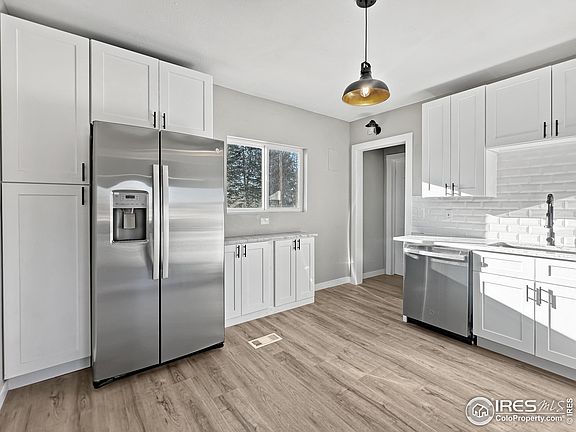 Luxurious 4-bed, 3-bath home with a stunning primary bathroom, granite kitchen, and new appliances. Stylish vinyl plank flooring, main level laundry, and an electric fireplace in the dining room. Enjoy a large porch, 1/2 acre lot, detached garage, and lean-to shed. New furnace, AC, and windows. Just 2 blocks from school and park. Experience modern living in a small-town setting! Schedule your viewing now!