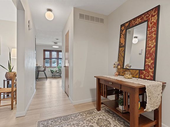 Nestled on a spacious 1/3-acre lot on a peaceful dead-end street is this beautifully updated 2-bedroom ranch brick home that combines modern finishes with classic charm. As you enter, you are welcomed by an open & inviting floor plan that seamlessly connects the great room & formal dining area. The great room boasts elegant built-ins and a large bay window, allowing natural light to flood the space. The spacious eat-in kitchen features newer appliances & ample cabinet storage with brushed gold fixtures. Relax in the cozy first-floor family room or in the three-season sunroom that overlooks the private fenced-in backyard. This home includes two bathrooms, one of which has been beautifully updated with a walk-in tile shower & a high-rise vanity with solid surface top. Two generous-sized bedrooms both offer plenty of closet space. Enjoy the convenience of first-floor laundry with the washer & dryer included. Step outside to a great usable backyard, complete with a white vinyl privacy fence and plenty of room for outdoor activities. New Buyer can add new flooring to finish the lower-level family room. Recent updates in 2023 include new LVP flooring throughout the main level, fresh paint, new light fixtures, replaced sewer lines from alley to house, newly added sump pump, water filter system, new appliances, & new HVAC.