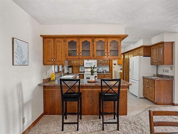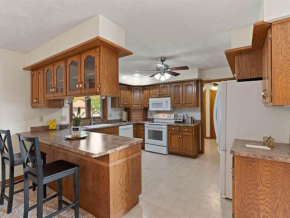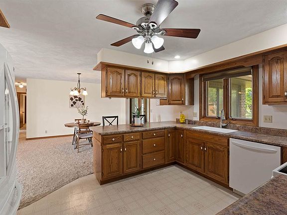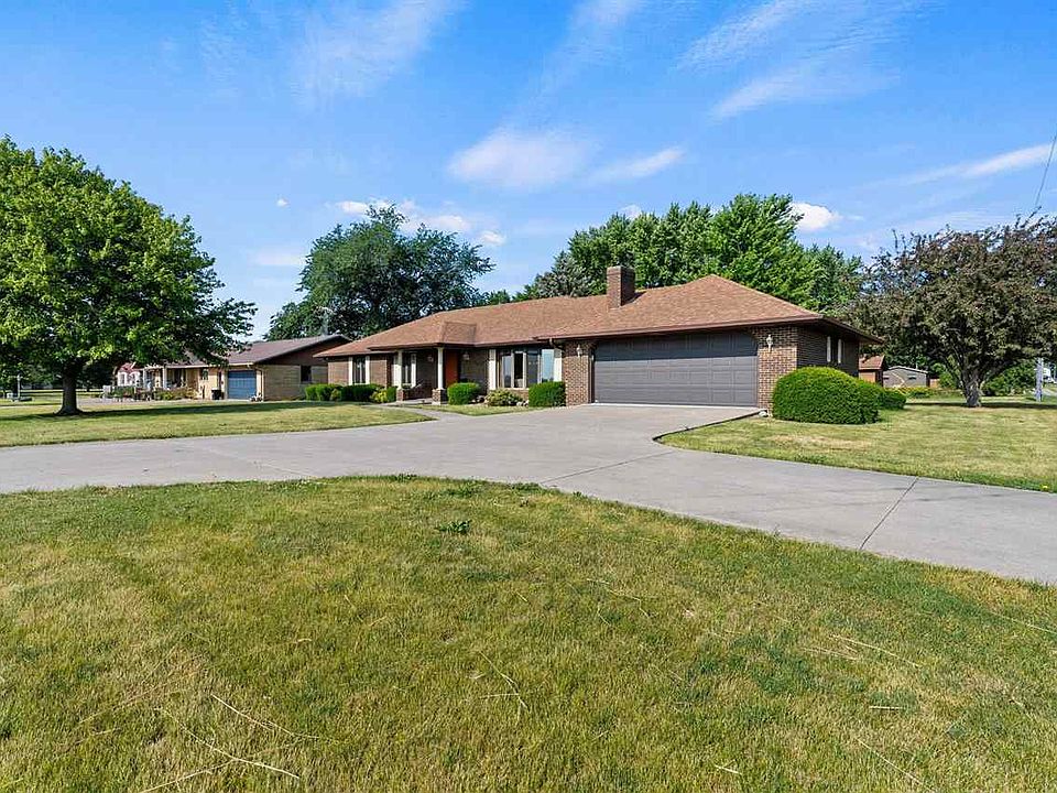 Welcome to small town living at its finest! This 3 bedroom 2 bathroom brick ranch home has been meticulously maintained and offers expansive living spaces. The adorable front porch leads you into the open concept main level. Living room with gas fireplace, built-ins, and a large bay window offers a cozy space. The eat-in kitchen was updated in 2010 with exquisite cabinetry and laminate countertops. Open to the kitchen is a large dining room that is perfect for hosting. Stunning sun room is located off the back of the home to add even more space on the main level for you to enjoy. The expansive primary bedroom offers a walk-in closet, additional closet, and a private en-suite with an updated tile shower. Two sizeable bedrooms and a guest bath are located on the main level as well. 2 car attached garage with a mud room/laundry room combination round out this brick ranch. Enjoy the oversized corner lot from your back patio and take in all that small town living has to offer.