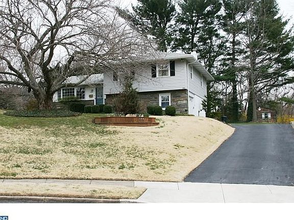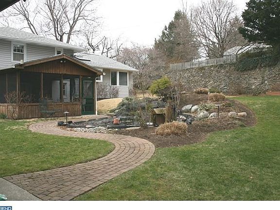 Quiet cul-de-sac street backing up to park. This large 4 level split features fresh paint, newer siding, 3 zoned heat, central air, Pella windows, new roof in 2001 and beautiful HW floors. Bright living room with stunning bay window and formal dining room with bay window showing view of back grounds. Dining room opens to an updated kitchen with vaulted ceiling, recessed lights, a skylight, and garden window. Kitchen features Corian counters, wood mode cabinets, H/W floors and breakfast bar. Family room has a raised hearth propane fireplace, an office nook and powder room, garage access and an opening to a large sun porch overlooking private rear yard with a pond, and the park in the background. MBR has hardwood floors and master bath. Two other bedrooms with double closets and ceramic tile hall bath. From garage, decend to the basement level with a finished laundry/utility room, another finished room with closet, both fitted with built-in cabinets and shelving. Swarthmore address, Springfield Twp taxes.