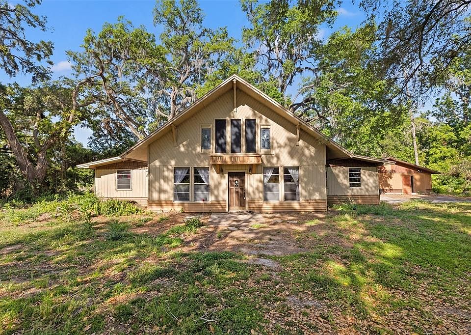 Your slice of heaven awaits! Welcome to this peaceful neighborhood where your long tree lined drive delivers you to a clearing where your chalet style home awaits! Custom built and brimming with character, be sure to take in the stained glass windows and custom cedar paneling. As you enter the home, you will find a two story fireplace and impressive vaulted ceilings. Upstairs lies a spacious loft with a custom built bar, and windows to enjoy your pond and nature views as you relax at the end of the day. Have a feeling of confidence, knowing this 3 bedroom, 2 bath home has never flooded. In addition to the 1,852 square feet of living space, there is a large detached 17x18 powered workshop for all of your storage needs. Whether you’re an avid DIYer or need a dedicated space for your projects, this workshop is a fantastic bonus. With no HOA restrictions, you have the freedom to truly make this property your own. This location offers exceptional conveniences, being only 30 minutes to downtown Tampa and an hour to Disney. This property with it’s idyllic surroundings is ready for your finishing touches. Escape the hustle and bustle and embrace a life of serenity and natural beauty!