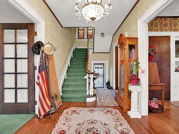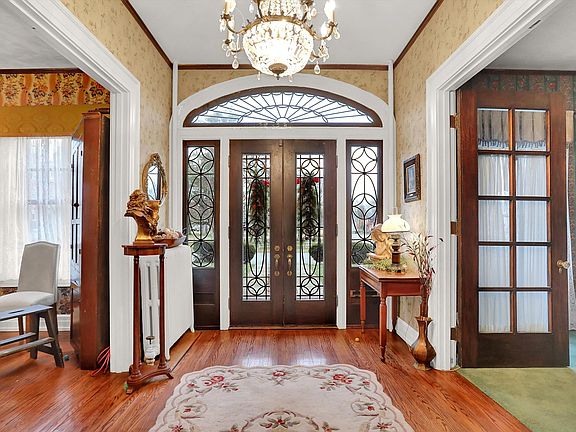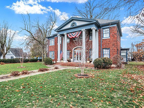 Get ready to own a piece of Knightstown history! Located across the street from the Hoosier gym, this beautifully maintained and updated Colonial home is ready for its next homeowners to make their mark. Exterior trim painted in 2020 with gorgeous beveled glass in front door. As you enter, you will be awed by the original woodwork of the entrance foyer and staircase. Cross into the formal dining room, with built-in china cabinet, and you will notice the full bath installed in 2018. Journey up the stairs to the elegant full bath with claw foot tub and 4 bedrooms with tons of closet space. Continue up to the 3rd floor for a 5th bedroom with a HUGE closet and half bath. Perfect space for a loft/rec room too! Head back downstairs to the basement and enjoy another LARGE rec room with workshop area. New steam boiler (2021) heats the house from top to bottom! Central A/C throughout the house, repaired in 2022. New (2022) water softener installed. Sump pump replaced in 2018. Electrical updated to 200 amp (2015). Detached 2 car garage has living space above. There is so much to see in this CHARMING home...don't miss out on this opportunity!