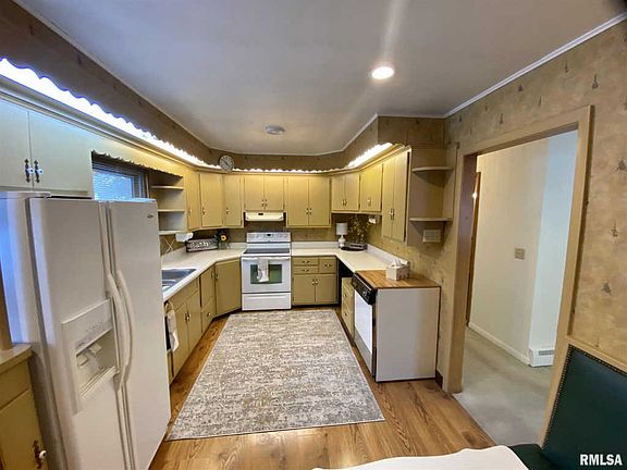 This home is a rare find in Aledo! A gorgeous brick home on a corner lot, and beautifully landscaped. You walk into the front door to a spacious living room with a wood burning fireplace, the home also features a formal dining room. Sip your morning coffee in breakfast nook in the kitchen or walk out to the back patio. This home features 4 bedrooms and 2 full baths on main level and 1/2 bath in the basement. Additionally there is a large family room in basement, perfect to enjoy a movie or create a gaming area. New roof July 2020, has updated windows except picture window . The oversized 1.5 car garage is large enough to fit a car and side by side. Appliances are negotiable. Seller's are offering a $3,000 new flooring allowance with an acceptable offer!