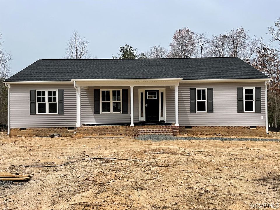 Flexible and favorite Dabney plan with Office. Perfect for any stage in life! Open and airy, 3bedroom/2bath with loads of personality, upgrades and open-concept living. We’ve made most of the selections, so you do not have to! You’ll love the QUARTZ counters in both kitchen and bathroom. 20mil wear layer LVP in most of home to include primary bedroom. Aristocraft cabinetry with soft close doors/drawers. Undermount lighting, recess package and more! Let’s take a walk through your new home! The brick front porch is rocking chair ready and will be a favorite outdoor spot. Large family room with LVP, recess and ceiling fan opens to the dining room dressed with LVP and recess can be formal or informal. Now lets talk about the kitchen! White wall cabinets with a contrast flagstone island that offers cabinetry on both sides and overhead pendant lighting. Quartz counters, stainless steel appliances, accent lighting and a HUGE pantry. Mudroom and Office are located nearby both with LVP and overhead lighting. Primary bedroom offer LVP flooring, ceiling fan/light combo, walk in closet, large ensuite with tile shower, comfort height vanity in flagstone dressed with Quartz counters. Bedrooms 2 and 3 are found on the opposite side from primary bedroom giving everyone privacy and quietude. Both bedrooms are carpeted with over head lighting and ceiling fan. Large closets are illuminated. Hall bath offers double bowl sinks with Quartz counters and LVP flooring. Large lot offers privacy and room to grow. What are you waiting for? This is HOME is almost ready to call your own! NO HOA, Firefly in place. Convenient to Short Pump, Lake Anna, Charlottesville and oh, what a little taste of Heaven. What is stopping you from taking a look? Onsite builder is interested in making sure this is HOME for you. Come take a look at the differences!