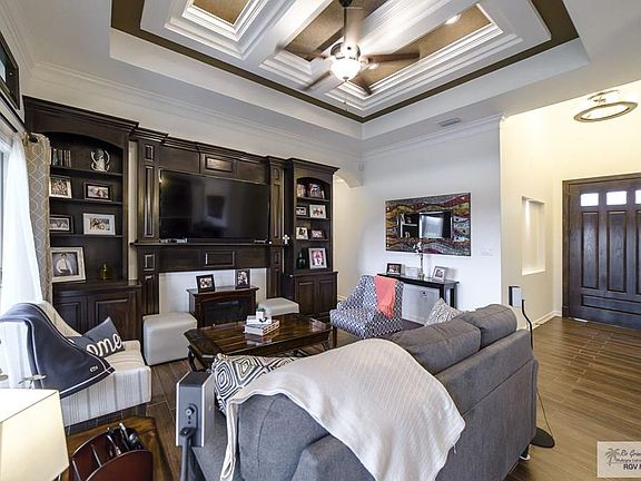 Prestige built custom home with all the bells and whistles! Home includes Plank tile throughout, Quartz countertops in kitchen and bathrooms, Slate backsplash in kitchen and wet-bar, decorative high ceilings, recess lighting throughout, Plantation shutters, crown molding, all stainless steel appliances, Cobblestone and river pebble tile floors in all showers, indoor laundry room, security system, large covered patio, Pergola, swimming pool, fully fenced backyard, sprinkler system and much more! All furniture negotiable.