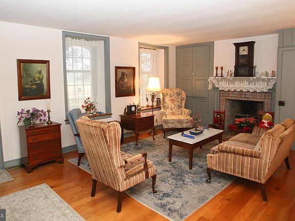 If you are looking for a home rich in history with incredible charm, this is IT! The original room of this stone farmhouse dates back to the late 1700s. The stone fireplace with walnut mantel, original wood beams, and hand crafted built-in glass cabinet create a cozy atmosphere perfect for a den, home office or dining room. Just off this room is an inviting 3-season porch with views of the lovely yard and surrounding country side. The front part of the home was built in the mid-1800's and still showcases stunning original millwork, built-in cabinetry, deep windowsills, 2 more fireplaces, hand-crafted doors, and beautiful hardwood floors. Climb the space-efficient staircase upstairs and you will find 3 generous sized bedrooms and a full bath. One more flight above is a finished space/4th bedroom, plus lots of unfinished attic storage space. The kitchen has been updated in recent years and features more modern amenities such as cherry cabinetry, Corian counters, double sink, flat top electric cooktop, wall oven, newer dishwasher, and a quaint breakfast area. Adjacent to the kitchen is another full bath and mudroom/laundry area. The detached garage/carport has plenty of room for vehicles, bikes, lawn/garden equipment, and more!Sitting on an acre and a half, in the rolling countryside of Chester County, this is a must see property!