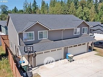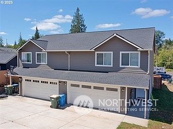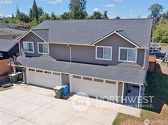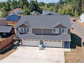 This duplex in the quiet town of Winlock offers spacious living with 1458 sq ft per unit. Investment opportunity, great rate. Covered porch areas and fenced backyards for each unit. Off-street parking for up to 4 cars in the garage or driveway apron. Each unit features 3 bedrooms and 2½ baths. Large open living area kitchen and pantry, stainless steel appliances and a refrigerator. Dining area, living room, storage, and a powder bath all LVP flooring, carpeted stairs and bedrooms. Closet organizers. Primary bedroom includes an extra-large walk-in closet that could be a office or nursery, double sinks in the primary bathroom. Close to restaurants, schools, banks, and groceries. Short drive to Chehalis and an hour away from PDX.