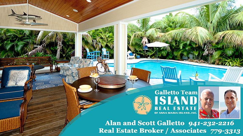 This home emulates all that living on a barrier Island in on the Gulf of Mexico in Florida is all about; LIVING pool side!!! 4 bedroom, 4 full bath home is 1662 square feet under air with an additional 580 square feet under roof pool side for a total of 2242 sq. ft. of living space! Totally remodeled and quality, Tommy Bahama type turnkey furnished; short list of exclusions. "Sonos" audio system installed both inside and out. FANTASTIC for Game Day!!! Tucked away in the city of Anna Maria you are a few blocks to everything! Bicycle, walk or drive to Pine Avenue the eclectic shopping/eatery area, the Anna Maria Community Center, Tampa bay and of course the GULF of MEXICO!!! Pristine sugar sand beaches await.