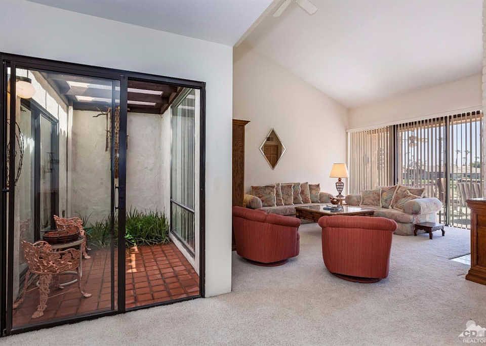 The east sun greets you in the morning long with beautiful mountain views. On the golf course, this three-bedroom, two-bath condo give you plenty of room for yourself and your guests. Directly across the street is the inviting pool and spa. This condo features two ovens and a brand-new refrigerator. Relax on the large patio overlooking the eighth fairway. There is a built in BBQ for outdoor living. The unit features a newer energy efficient Air Conditioning. Furnishings are available outside of escrow. Another unique feature is the atrium with your own garden. Monterey Country Club has 27 holes of championship golf, a fitness center, tennis, pickleball courts, and social membership