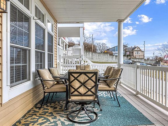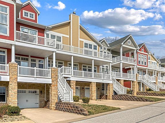 The Moorings at Grafton! Delightful contemporary 2 bed, 2.5 bath condo. 2 levels w/a VIEW & luxurious living spaces. Lower walkout level with a vast covered patio & upstairs a spacious deck with a stunning waterfront view of The Mississippi & Grafton Marina! Everything you'll need for a weekend away or your next home! Fresh neutral paint throughout, hardwoods & a primary ensuite w/soaking tub, shower & a full walk-in closet. Airbnb opportunities abound with 2200+ sf of finished living space, 2.5 baths & a locking owners storage! The newer custom kitchen features granite countertops & stainless appliances. NOT in a flood zone this all electric condo will rival anything else on the riverfront for views, walkability & easy access to everything resort-land...restaurants, entertainment, boating, fishing & more! Pere Marquette State Park, riding and hiking.....ferry across the river for more adventures! Escape the big city & zip line far away from the asphalt jungle! 30 min to all ports STL!