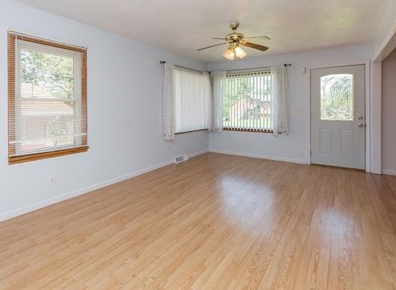 Looking for a nicely updated 3BR home under 100K? Look no further! This nearly 1000SF ranch offers an open floor plan with 3 main floor bedrooms, updated oak kitchen, newer laminate flooring in kitchen and living room, original hardwood floors in bedrooms, newer windows, HUGE deck and more! An unfinished basement offers potential for additional finish in the future with framed wall and stubbed for a bath! NFC Financing Available. All appliances plus HSA Warranty Included!