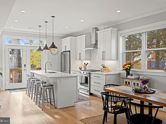 Welcome to your dream home in the heart of Manor Park—an urban oasis that seamlessly blends modern luxury with comfort and convenience. Totally renovated and expanded in 2020, this 5-bedroom, 4-bathroom charmer boasts a contemporary interior design with meticulously-crafted living spaces, all sited on a generously-sized, level lot. The kitchen, a true highlight of this residence, features top-of-the-line appliances accentuated by elegant quartz countertops and an expansive breakfast bar on the center island. The airy and open floor plan keeps the chef in the center of it all. The hardwood floors add warmth to the main and upper levels, while the basement showcases a stylish wet bar area, recreation room, and an additional bedroom and full bath, all with an exit to the backyard. Crown molding on the main floor, 9-foot ceilings, and a working gas fireplace create an inviting atmosphere. The owner's suite and secondary baths boast quartz counters and a contemporary aesthetic. The owner’s bath features a large double vanity and seamless glass shower stall, while the main floor hosts a full bath with a shower, accessible from both the bedroom/home office and the main living space. The exterior of this home is equally impressive, with a large deck (completed in 2021) and a newly-installed patio with a sitting wall for outdoor enjoyment. The expansive, fully-fenced backyard provides privacy and a sense of retreat. Under-deck storage, a parking pad with a roll-up garage door accommodates up to 4 cars, while a 240V EV charging drop further elevates the property's appeal and convenience. Additional features include a mini-split heating system in the basement, Nest thermostat, Ring doorbell, key-code locks on both front and back doors, ADT security system, and dimmable lights on the main and lower floors. Beyond the property, the neighborhood offers a perfect blend of urban living and tranquility. Within walking distance, you'll find two coffee shops, parks and playgrounds. The community exudes a friendly atmosphere, making it a welcoming place to call home. Explore nearby Takoma Park, Silver Spring, Columbia Heights, and more, with great restaurants and amenities at your fingertips.