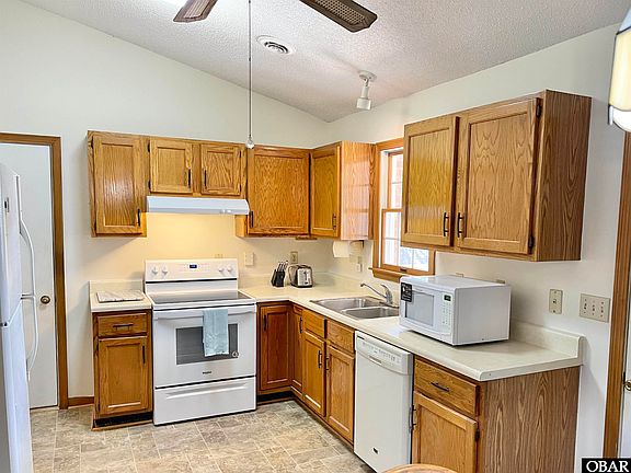 This is a lovely brick home located in the heart of Kill Devil Hills, but far enough off of the main road to make it feel like a private oasis.  It is surrounded by trees and landscaped to make the home feel private and secluded.  This 3 bedroom two bath home has a sunroom on the back that could be used as an office, art room or place to sit and watch the birds while having a cup of coffee. There is an attached garage with a dry entry into the kitchen. The home also has a large back yard, outside shower and a storage shed.  This home would make a great primary residence or a unique rental property.