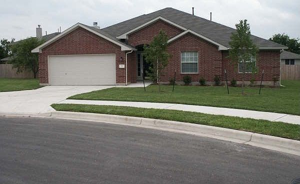 Big 1 story house for sale!Attractive red brick exterior on three sides.Open floorplan with large island kitchen.High ceilings and architectural arches throughoutLight bright living room has corner fireplace with gas starter. Ceramic tile entry, kitchen and dining area.Island kitchen has lots of cabinet space and pantry. Gas range with self-cleaning oven, built-in microwave, side by side refrigerator with ice and water in the door. Huge bedrooms.Ceilings fans in every room.Master bedroom has big walk-in closet.Master bath has garden tub, separate shower, double vanities, Lots of closet space including 3 linen closets and a cleaning closet.Large utility room for washer and dryer.Large corner lot. Backyard space could be enlarged by moving the fence. Covered back porch with ceiling fan.Security system.Garage door openersBlue Ribbon Round Rock schools!