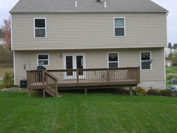 This STUNNING HOME has been meticulously maintained both inside and out! It sits on a cul-de-sac street in the sidewalk-lined community of Whispering Pines. It boasts an open living room-kitchen concept and includes a large pantry and island. The crown molding runs throughout the main floor including the modern dining room and first floor den. There is a 1/2 bath and laundry room on the main floor as well. The Master Bedroom includes a master bath with a jetted tub and separate shower with beautiful tile accents and a large walk in closet. The upper floor also has 3 additional bedrooms, 2 with walk-in closets, and another full bath. The front of the home is spectacular with a stamped and colored sidewalk leading up to the brand new front door. The large back yard full of natural wonder can be viewed from the newly stained deck. The finished basement comes with surround sound and a large 2 car garage. Privacy galore - yet Close to everything..Rt 65, Cranberry Twp, & shopping!