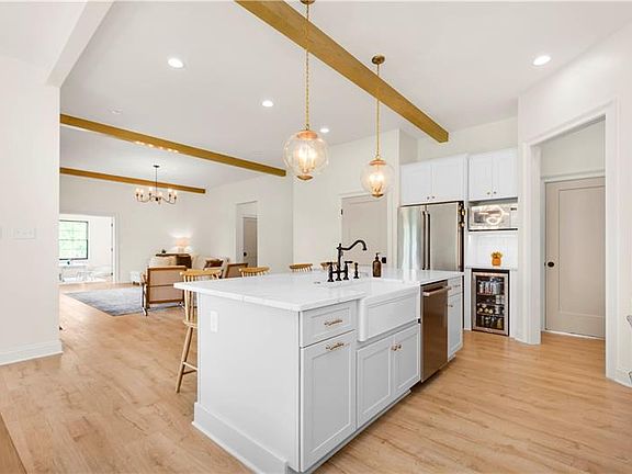 This home is every Pinterest & Houzz dream board come to life! Prepare to have your jaw drop & fall in love. Every detail has been thoughtfully curated to create the perfect, chic West Coast vibe throughout. From the great room with beams, reclaimed wood mantel, stone double sided gas fireplace to the absolutely stunning kitchen with miles of counter space, huge island, farmhouse sink, beverage center to the dining room that leads to the covered patio. Step outside & be awed by the massive flat, private backyard, but don't forget to check out the outdoor fireplace. Head back inside to see the main level play room or home office & powder room. Upstairs prepare to swoon over the owners' suite with tray ceiling, boutique spa bathroom, walk-in closet & French door closets. Two of the gorgeous bedrooms share a jack n Jill bath.The 4th bedroom has an en-suite bath. The finished lower level features a media room, den, full bathroom and large space perfect for a play room.This home is the one!